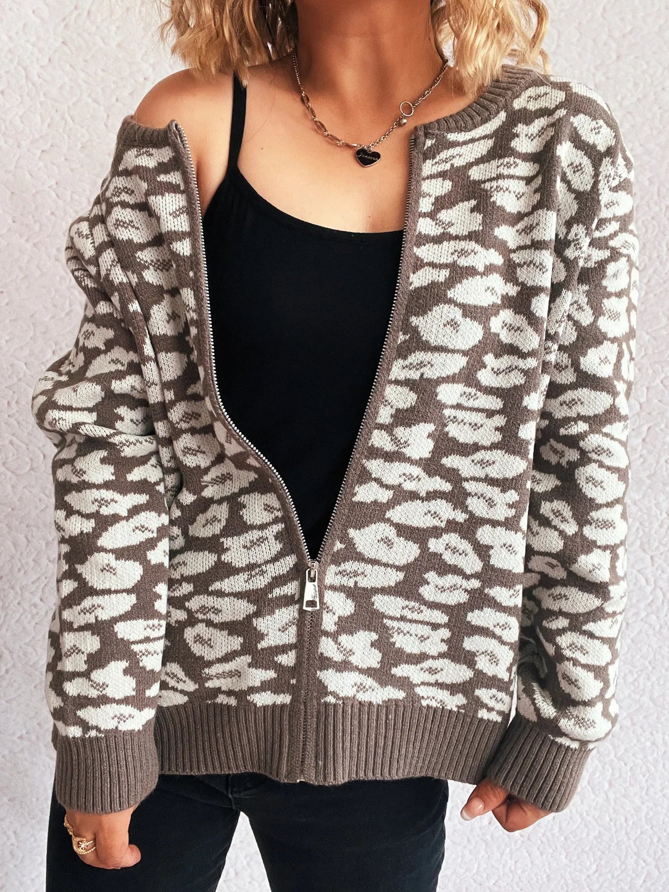 Zip Up Long Sleeve Cardigan